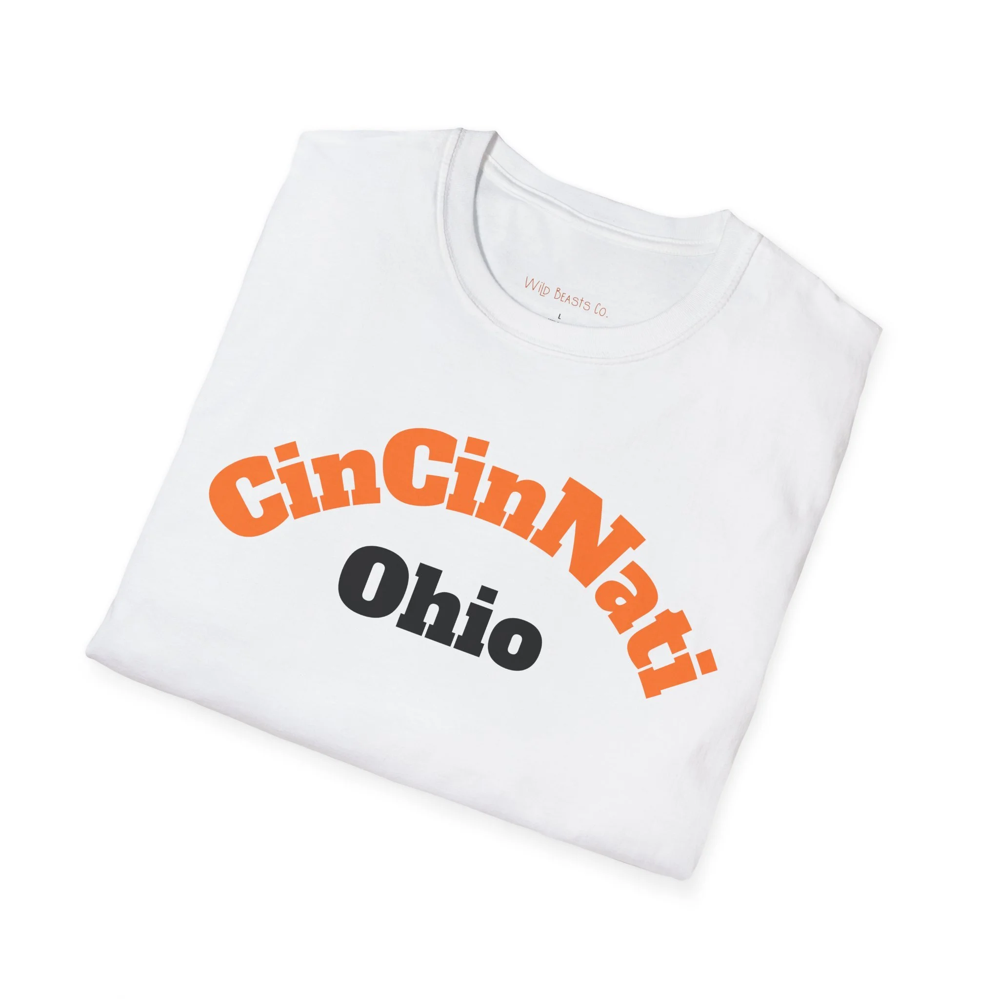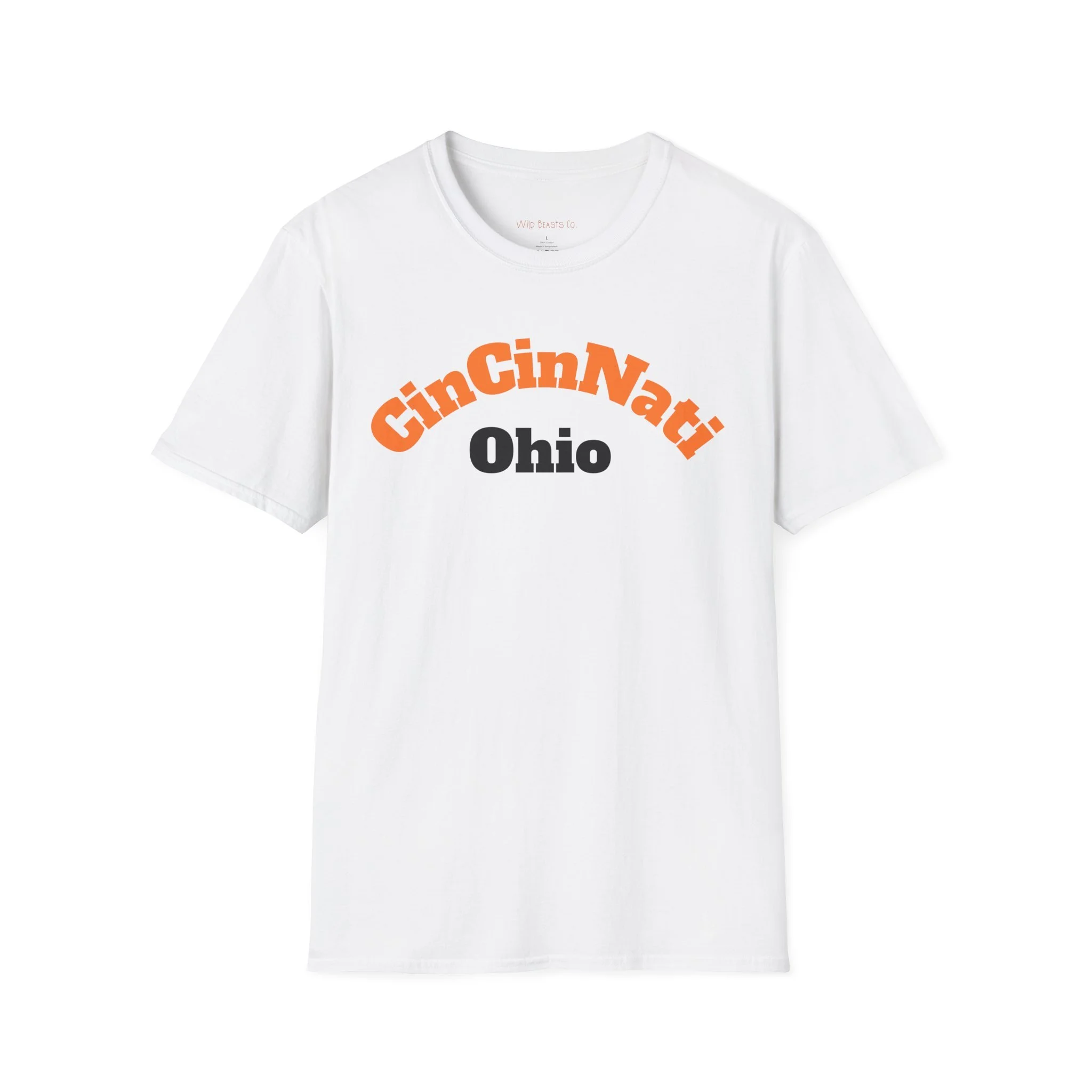 Unisex 100% Cotton Softstyle T-Shirt - CinCinNati, Ohio - Orange & Black on White